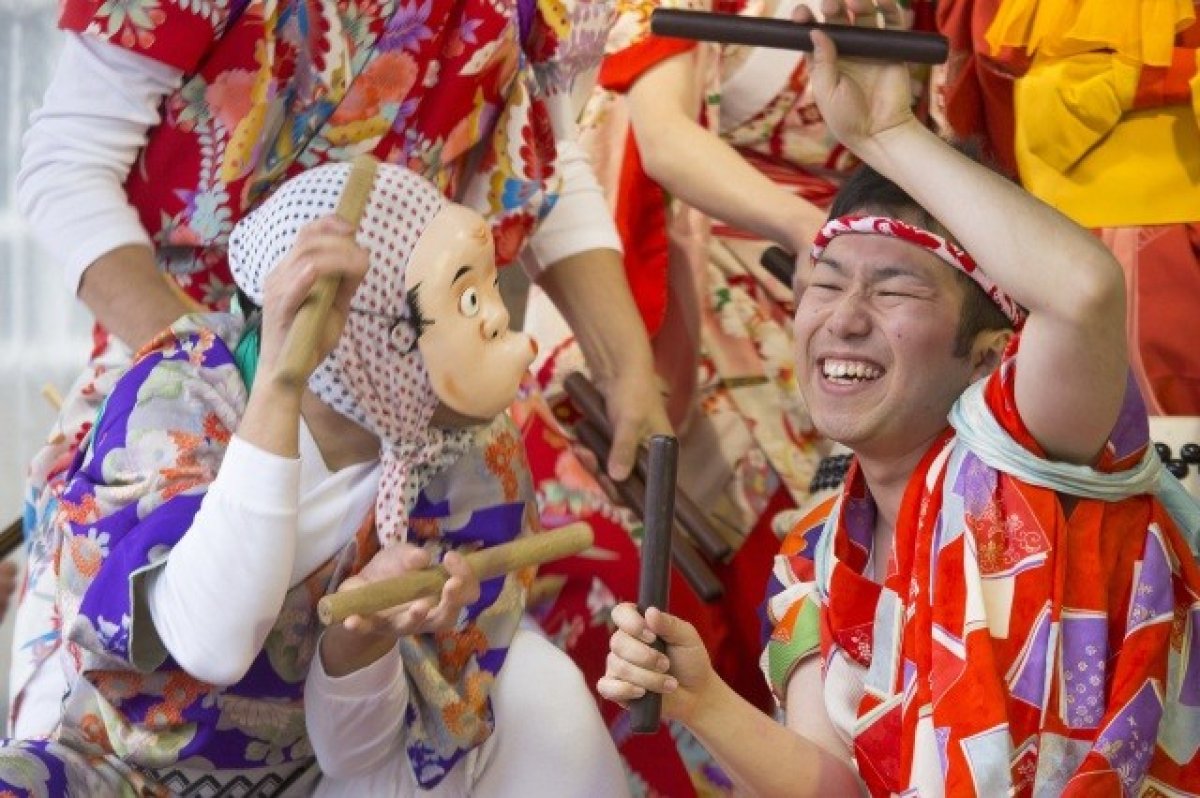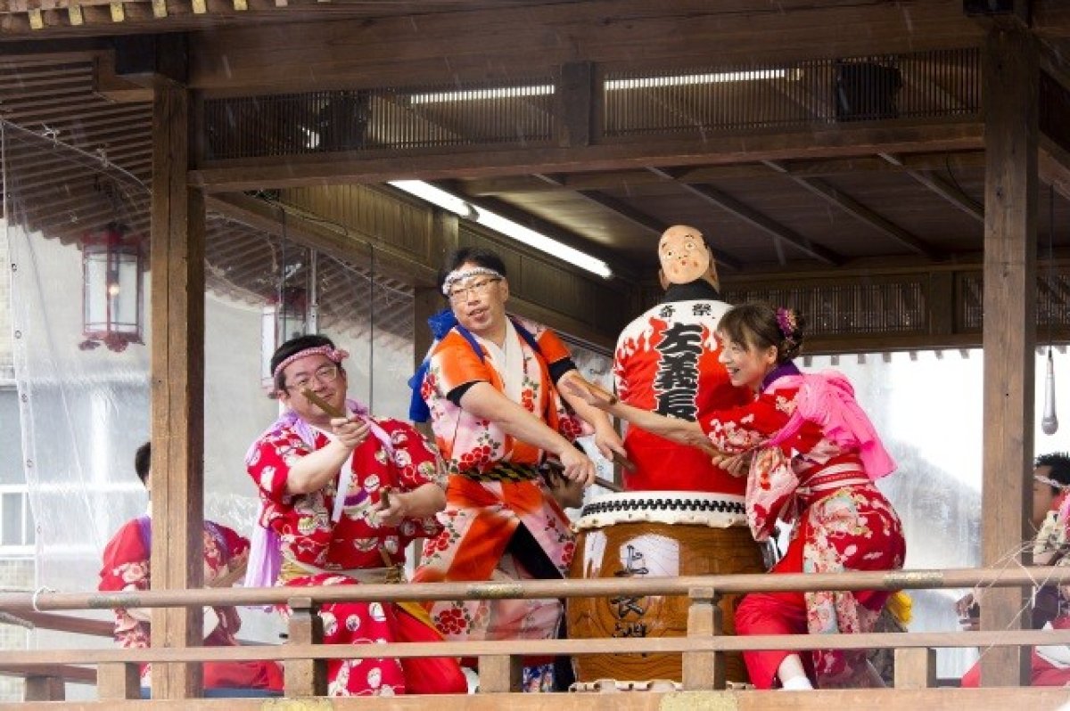 勝山市街地の各町内に12基の櫓を建て、その上で赤い長襦袢姿の大人たちが子供を交え、独特のおどけ仕草で三味線、笛、鉦による軽快なテンポの囃子にのって浮かれます。