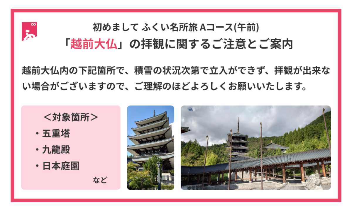 福井を初めて観光される方にもオススメな、福井の見どころを半日で周遊するお手軽なコースです。